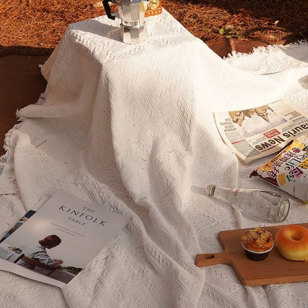 Een 1,8 bij 2,6 meter groot stoffen picknickkleed.