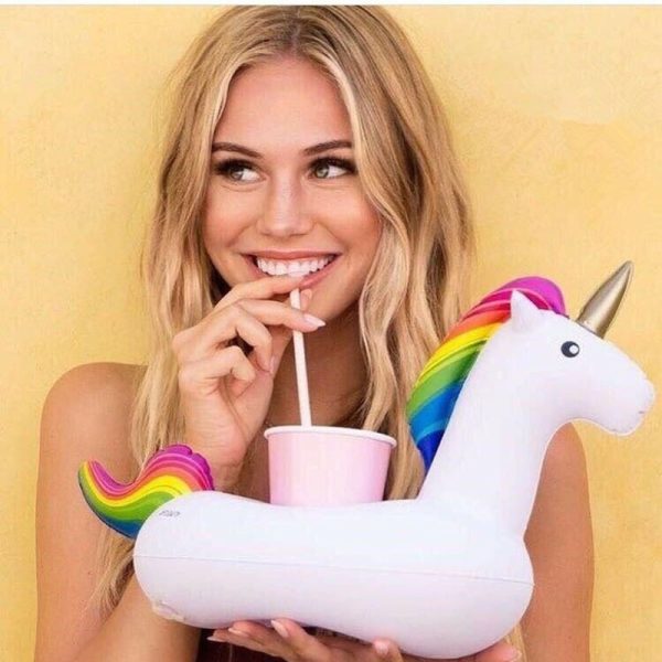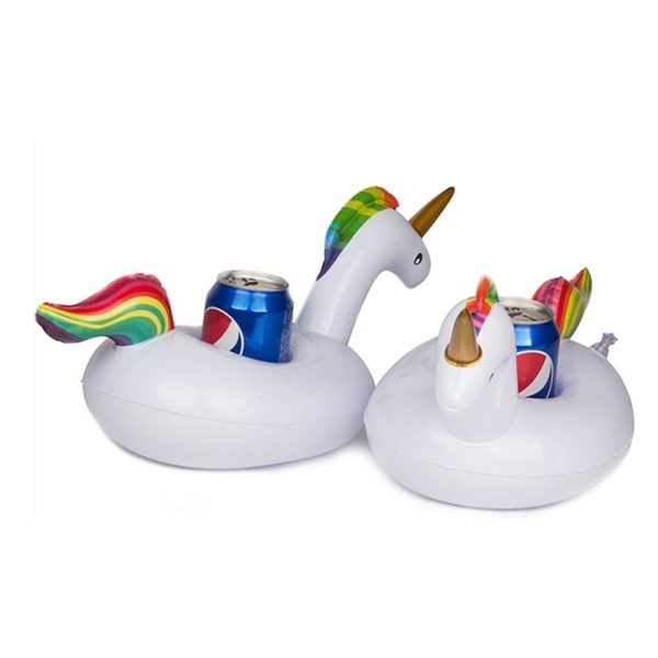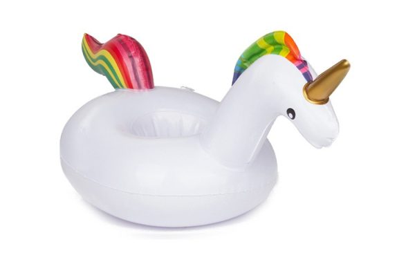 Twee opblaasbare eenhoorn bekerhouders voor bijvoorbeeld in het zwembad.