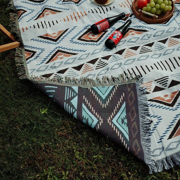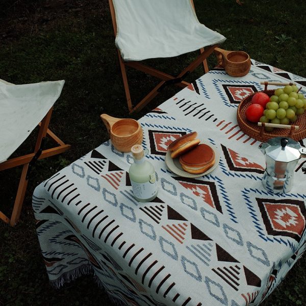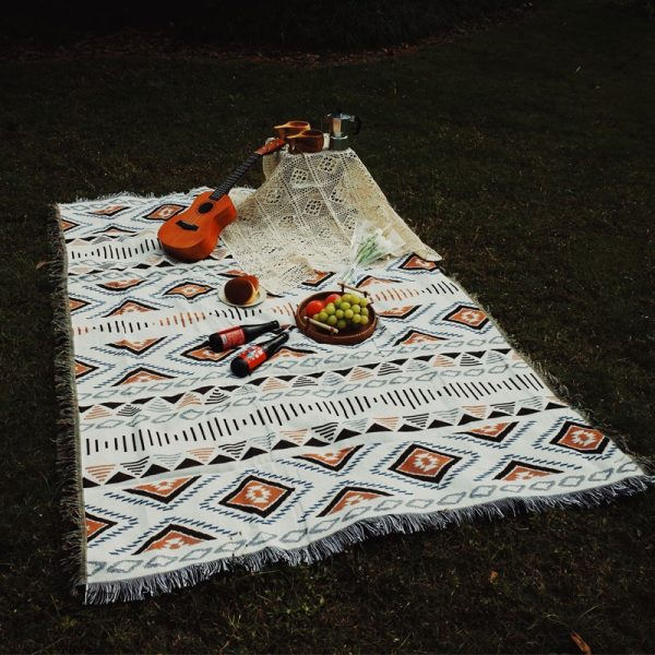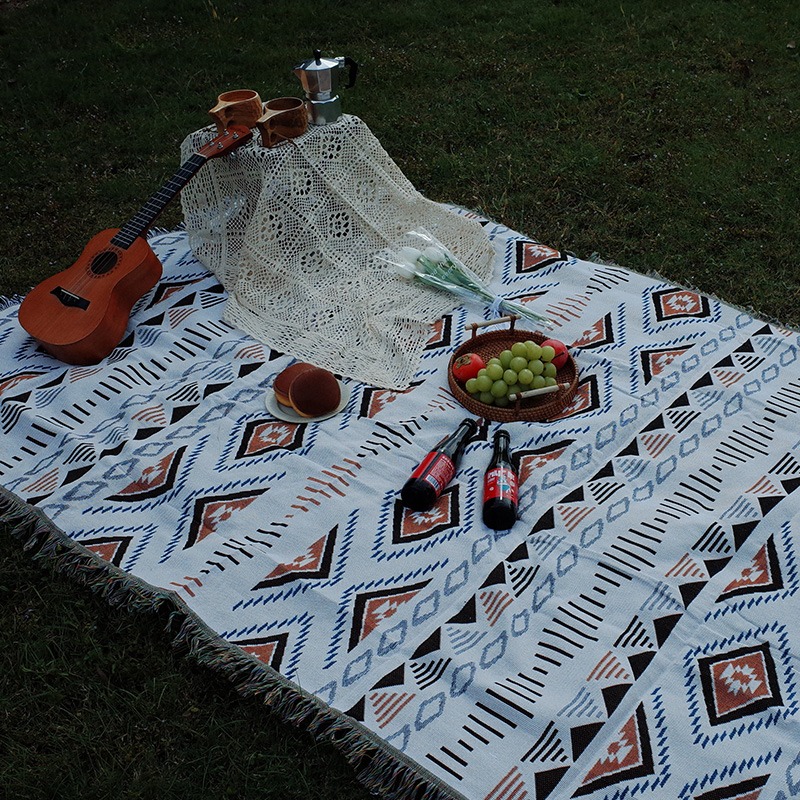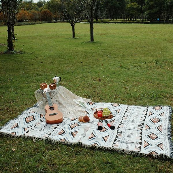 Een 0,9 bij 1,8 meter groot stoffen picknickkleed.