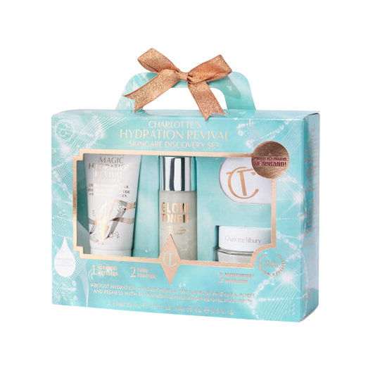 Verzorg en voed je huid met de Charlotte Tilbury Charlotte’s Hydration Revival Skincare Set. Deze handige hydratatieset is samengesteld om de huid te reinigen, te verzorgen en te hydrateren, terwijl het helpt om het vochtgehalte aan te vullen en een frisse, gezonde glow te ondersteunen.