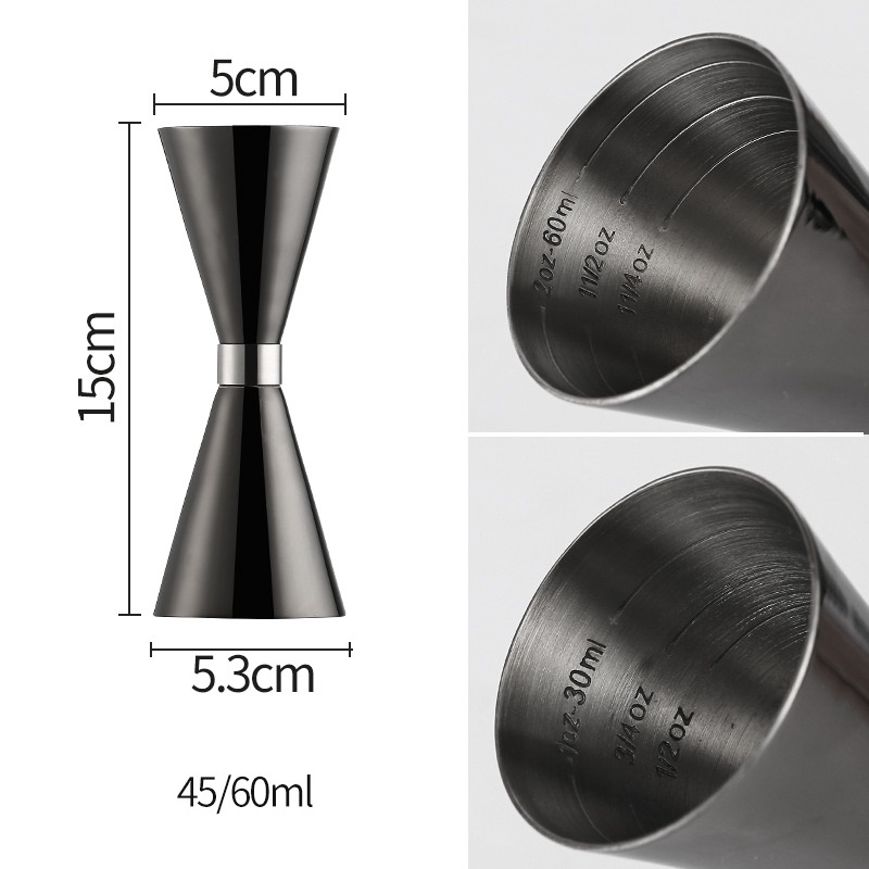 Cocktailmaatje Zwart - 45/60ml - Drankmaatje Jigger Barmaatje