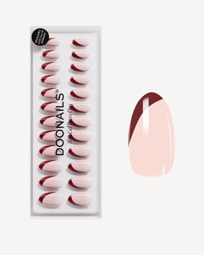 Doonails - Soft Gel Press Ons - Red Slate French Short Almond