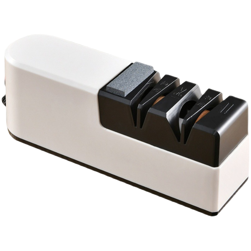 De messenslijper is zeer eenvoudig te gebruiken en veilig dankzij de antislip basis die voorkomt dat de slijper wegglijdt tijdens het gebruik. Het heeft ook een automatisch stopsysteem dat voorkomt dat het mes overmatig wordt geslepen en beschadigd raakt.