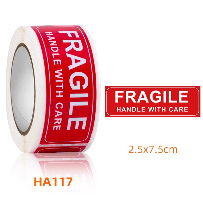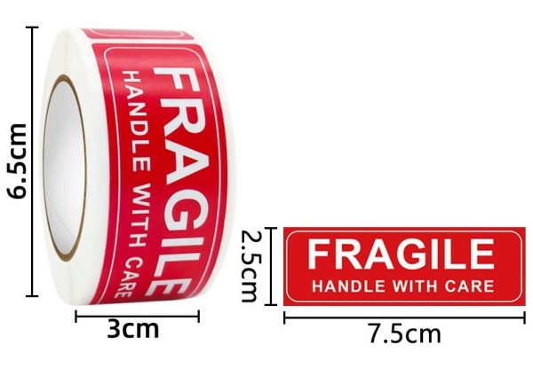 Fragiel Stickers 2.5x7.5cm 150 stuks op rol
