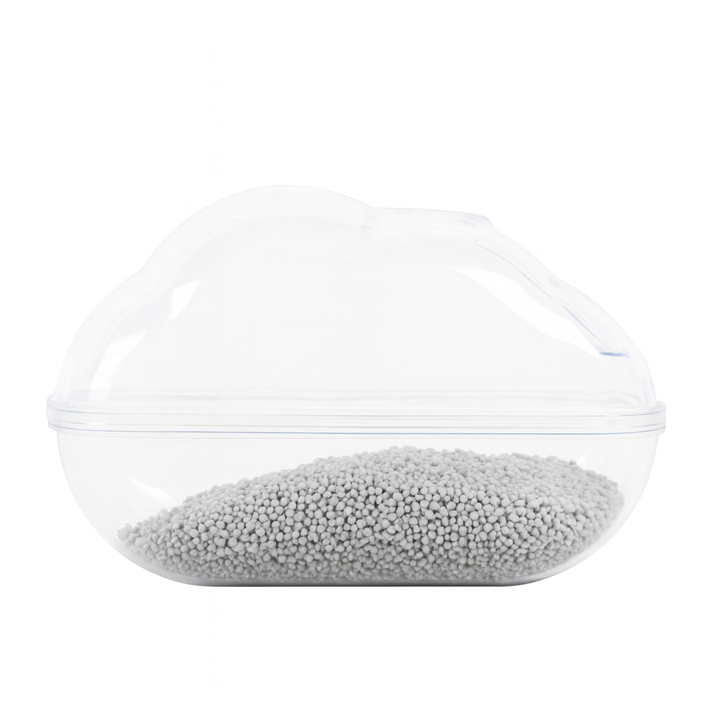 Een grote kunststof transparant hamster zandbakje met deksel.