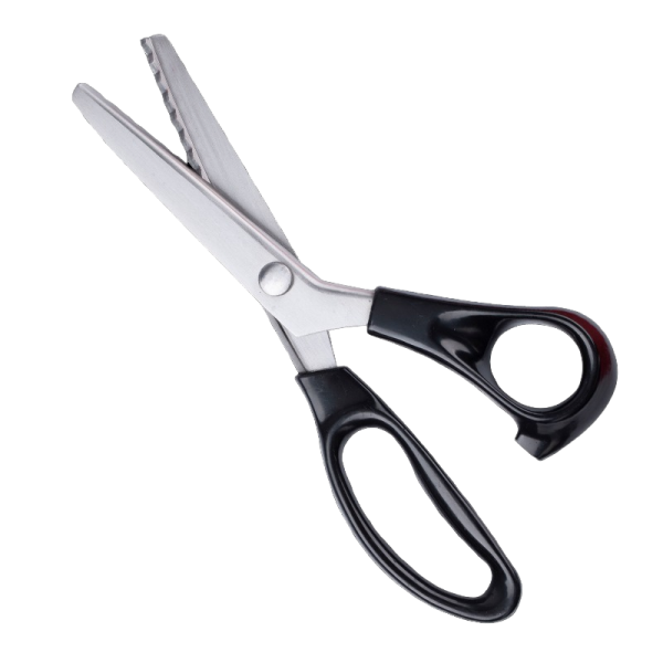 Een kartelschaar geschikt voor stof, papier en andere zachte materialen.