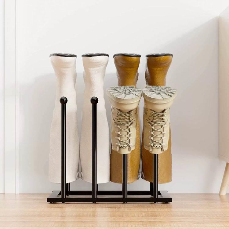 - Stevig Metaalontwerp: Het laarzenrek is gemaakt van zwart metaal, wat zorgt voor een stevige constructie die bestand is tegen dagelijks gebruik en verschillende weersomstandigheden. Dit rek is ontworpen om lang mee te gaan.