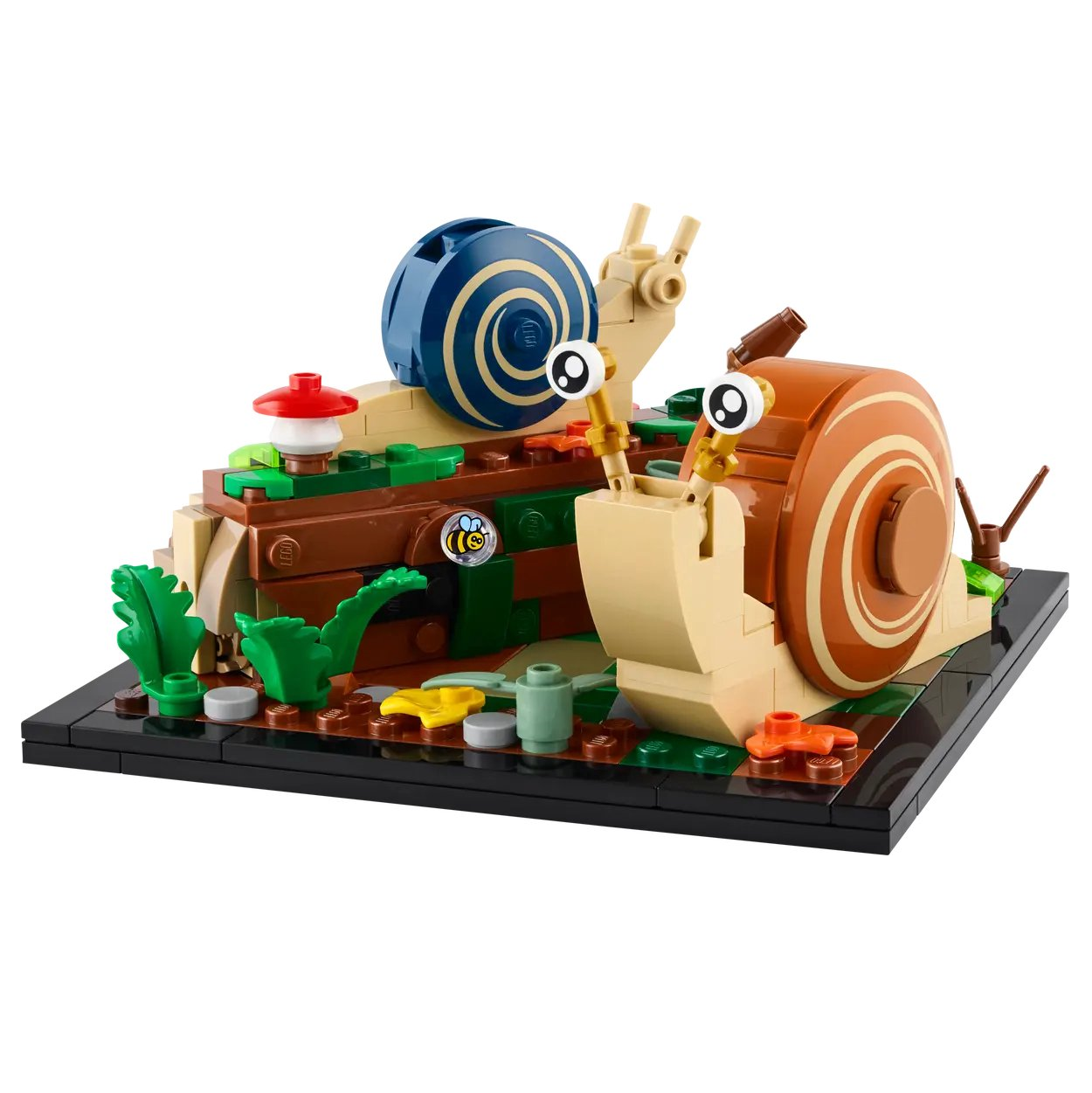 LEGO set met 2 vriendelijke slakken, een bij en natuurlijke details
