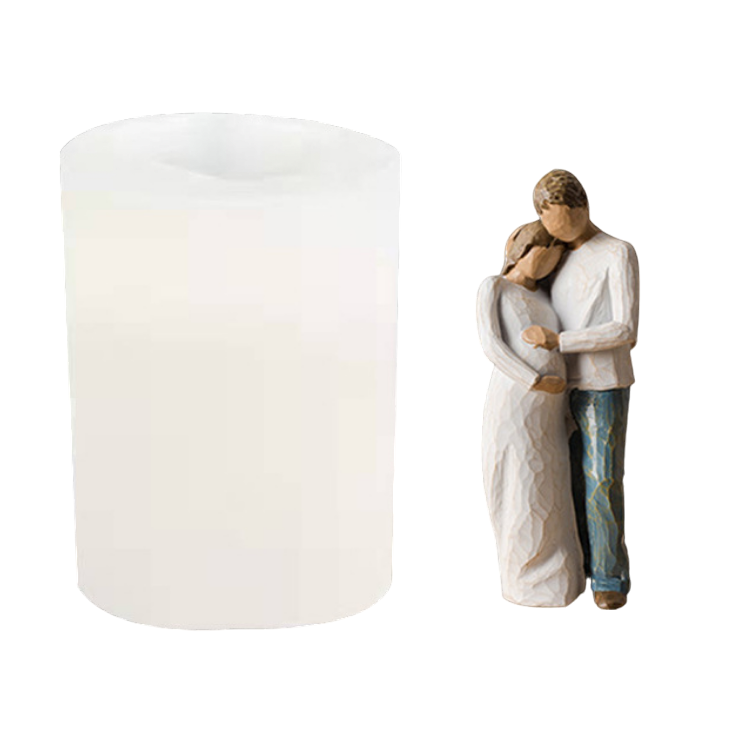 Maak een 11cm hoog beeld van een zwangere vrouw met haar man in bijvoorbeeld zeep of kaarsvet of gips met deze silicone mal.