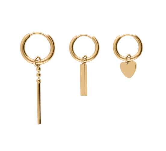 Geef jouw look direct een boost met deze oorbellen trio set met hartje. Deze set is een absolute eyecatcher en mag niet ontbreken in jouw sieradencollectie.