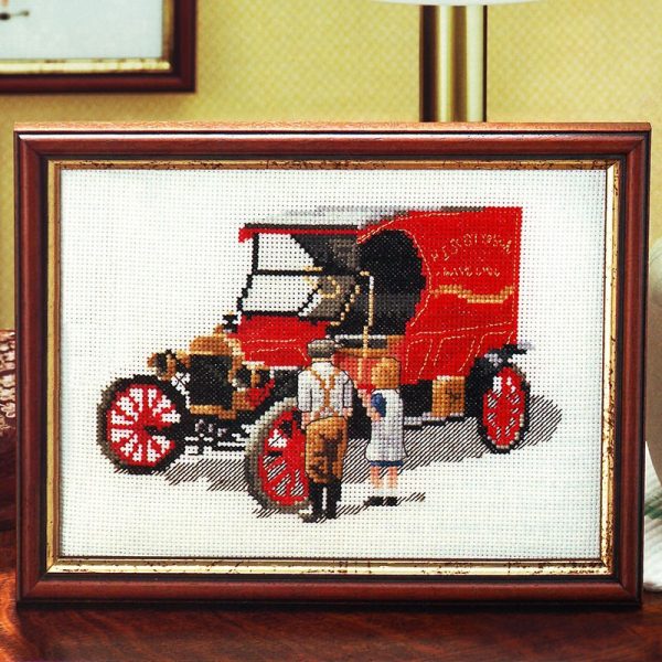 Oldtimer Auto Borduurset 14CT op Wit Borduurstof
