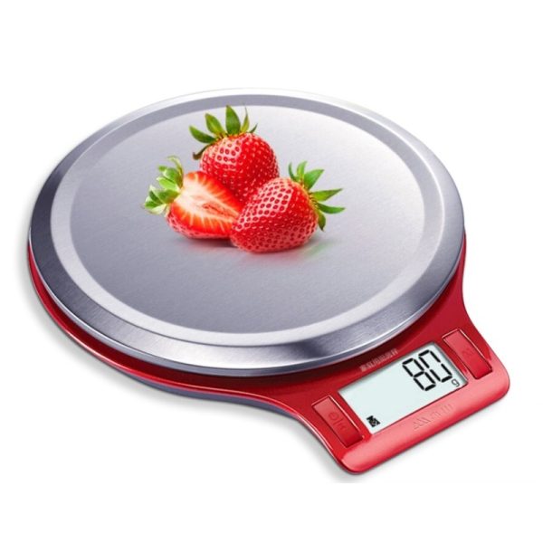 Rode Keukenweegschaal - tot 5Kg - Rond Weegschaal Keuken - Digitaal
