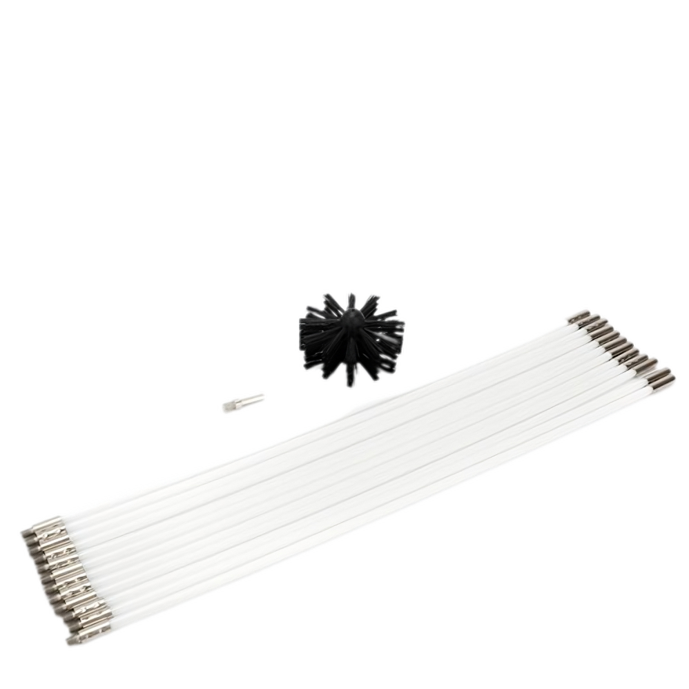 De set bevat ook verschillende borstels om verschillende soorten roet en vuil te verwijderen. De borstels zijn gemaakt van stevig materiaal en hebben een formaat en vorm die passen bij de meeste schoorstenen. Je kunt de borstels gemakkelijk aan de stok bevestigen met behulp van een schroefsysteem.
