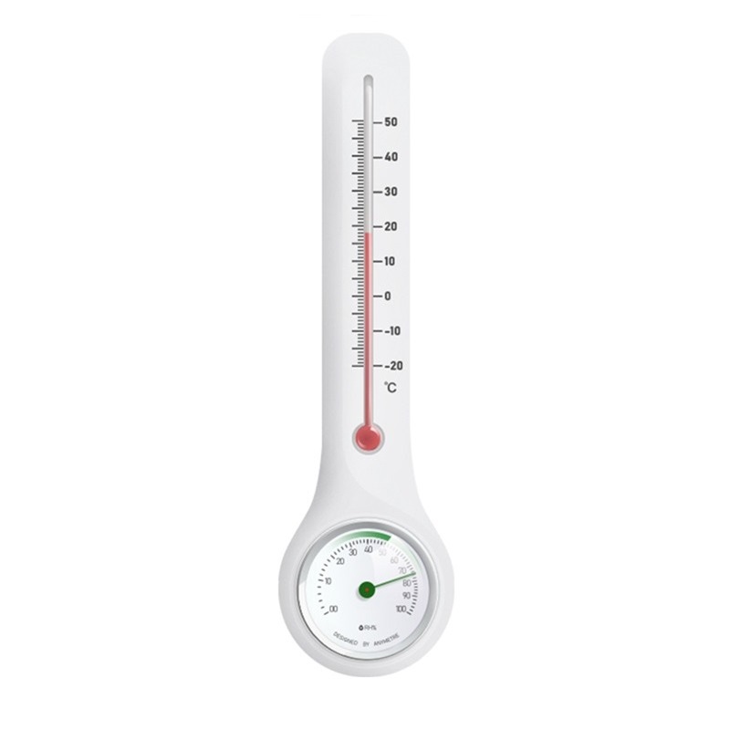 Een analoge thermometer / luchtvochtigheidsmeter.