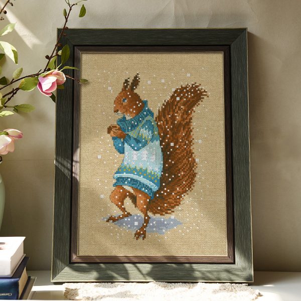 Winter Eekhoorn Borduurset 14CT op Bruin Borduurstof DW2736