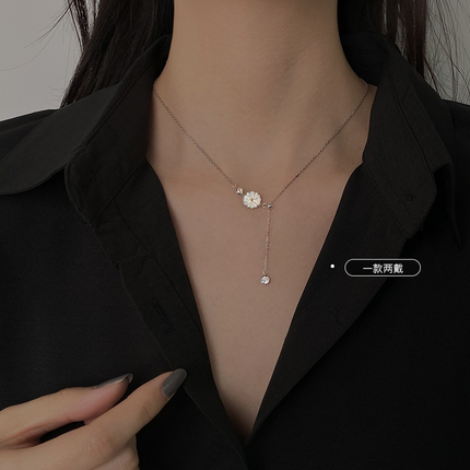 Zilveren Ketting met Witte Bloem met diamant 925